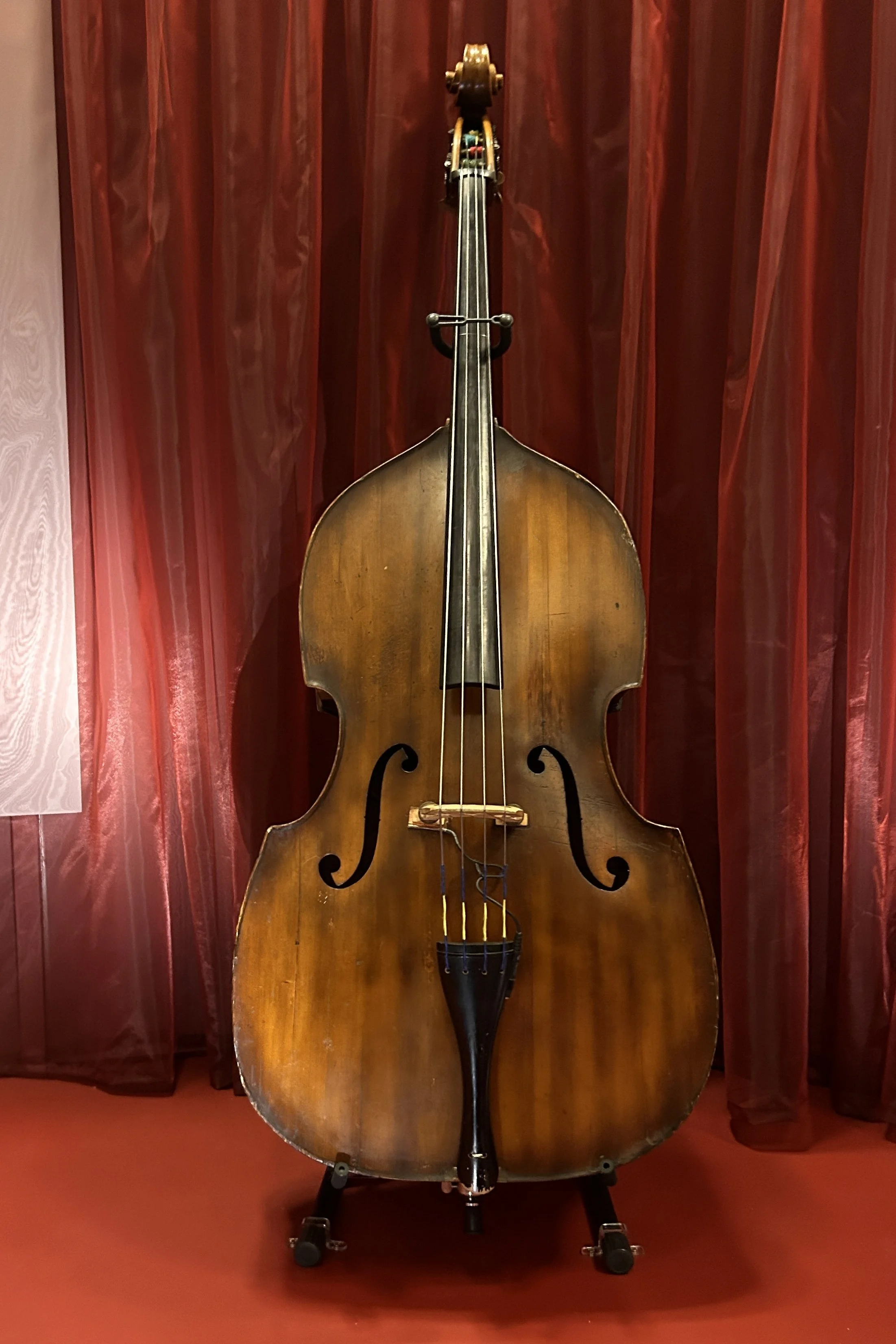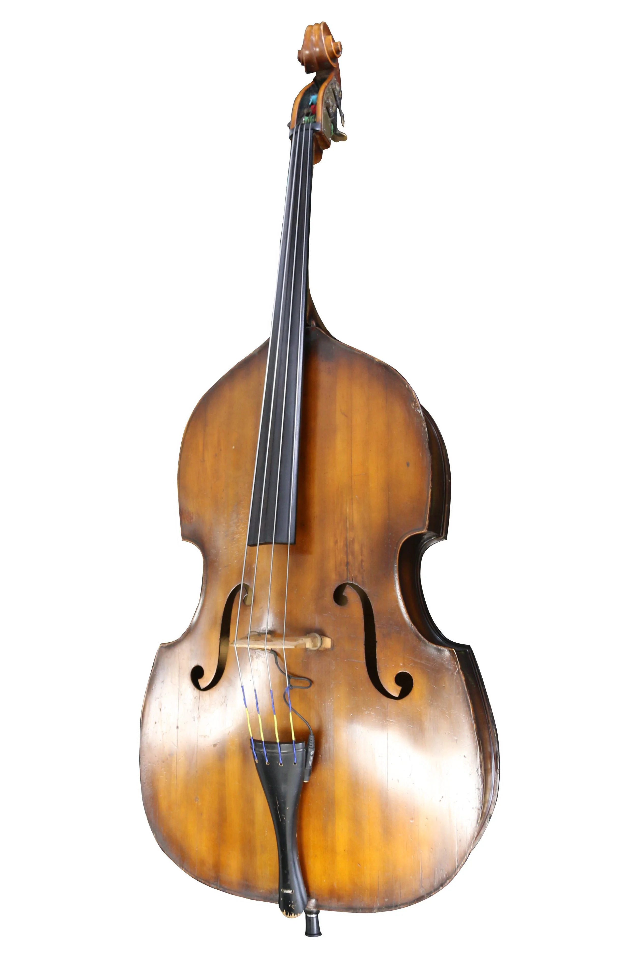 Double bass was purchased in 1955 and was used by owner in childhood and throughout his life. Double base is strung and modern strings and bridge.