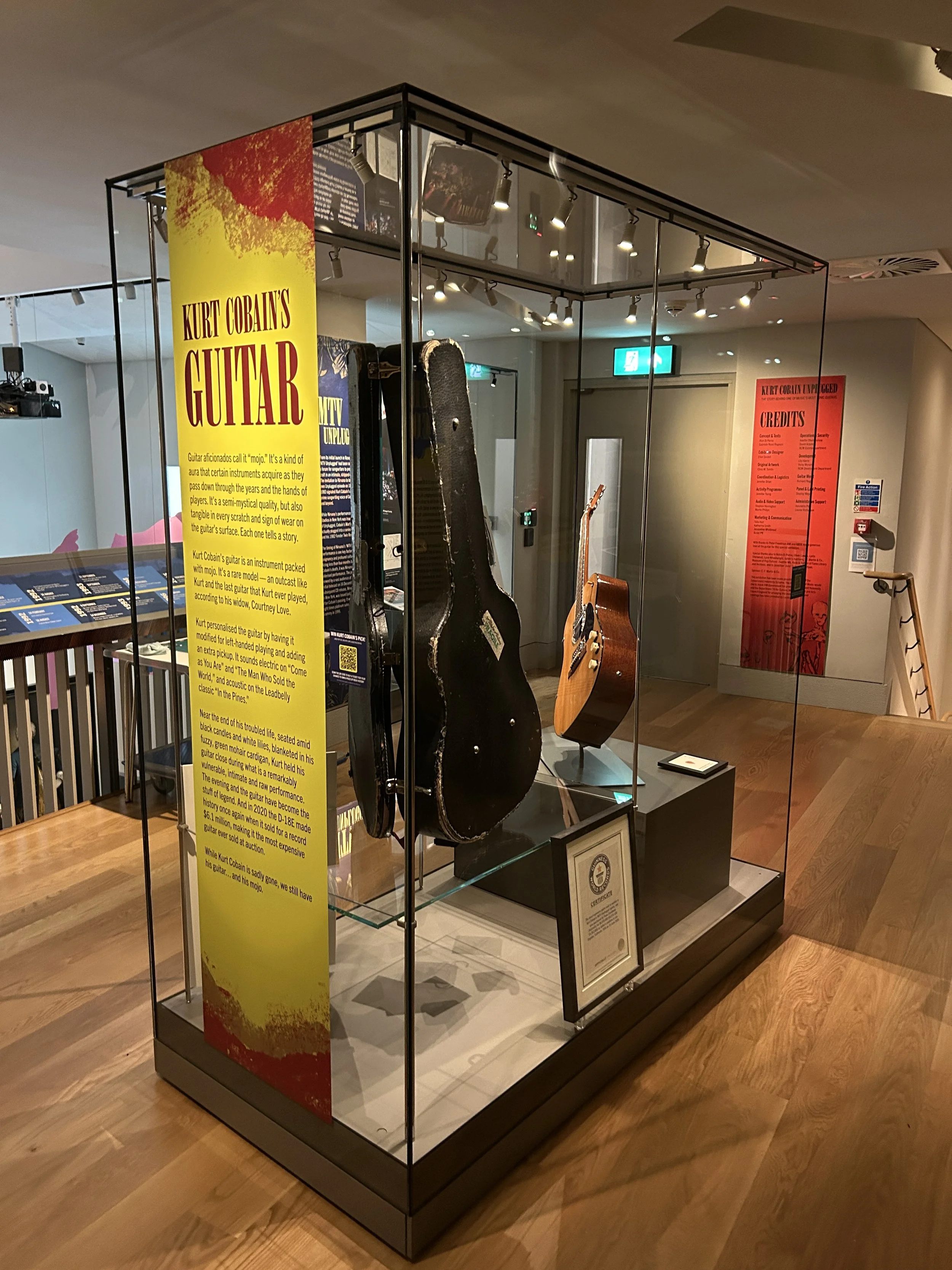 Step into the world of Kurt Cobain and explore the legacy of Nirvana, a band that defined a generation. Explore their iconic 1993 MTV Unplugged performance, one of Nirvana's final televised appearances before Cobain’s death just five months later. The exhibition, at the Royal College of Music Museum, reunites Kurt Cobain’s guitar with another piece of rock history – his famous olive-green mohair cardigan, worn during the MTV Unplugged performance, marking the first time these two legendary items have been displayed together.