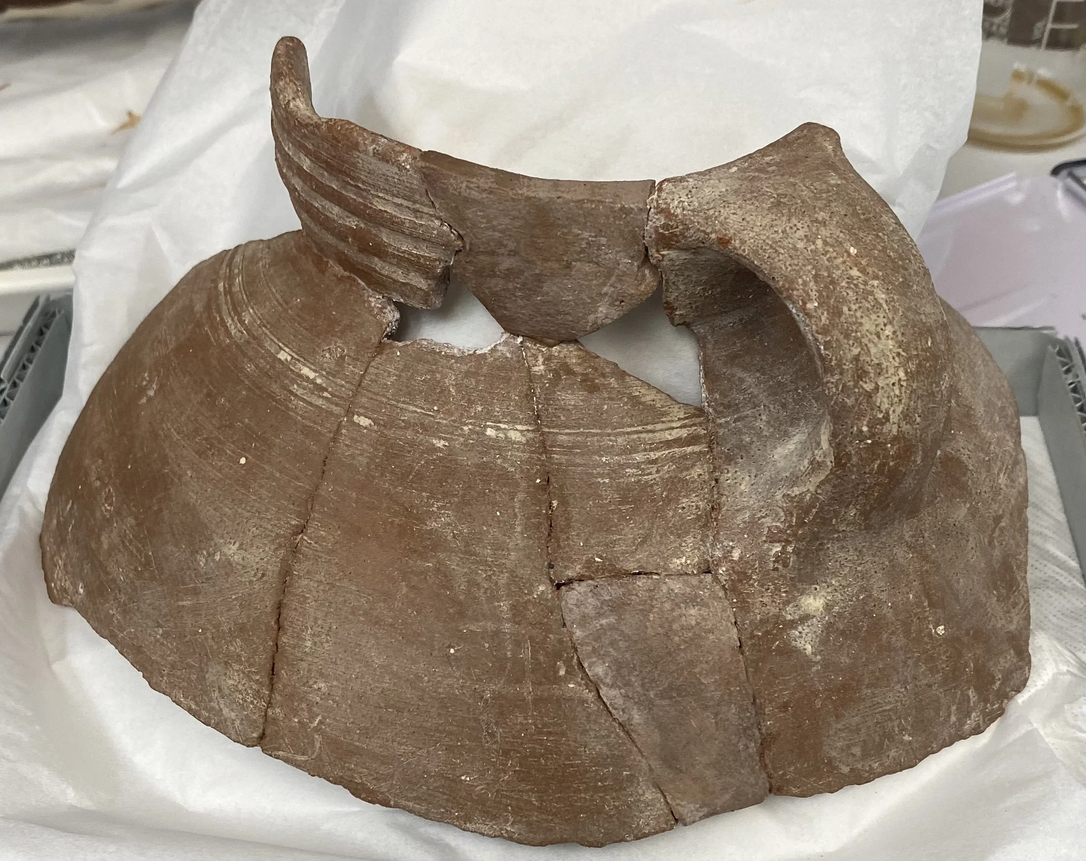 Object Description: The object is associated with the potters that created it, who were either local potters near the site or cooking pot traders that would travel to the region. The item is also associated with Dame Kathleen Kenyon, a notable English archaeologist who led numerous excavations in Jericho, Jordan, and Jerusalem. It is likely the piece was wheel thrown. Wheel thrown cooking pots were common practice in pottery production in Jerusalem during the Iron Age II, further supporting this theory.