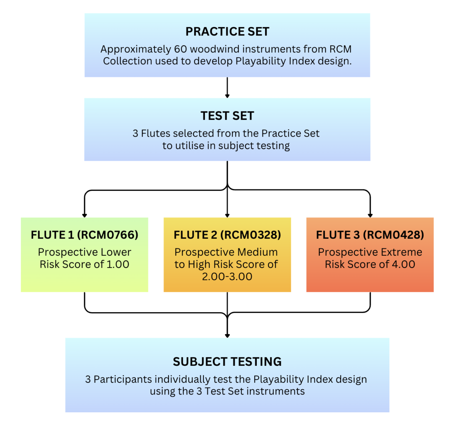A central component of this dissertation is the creation and refinement of the Playability Index, a tool dedicated to the practical assessment of the playability risk of historic woodwind instruments. The design, evaluation, and critical review of the index are thoroughly addressed.
